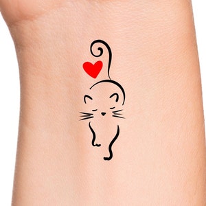 Cat Heart Temporary Tattoo Cat Red Heart Tattoo Animal Etsy Canada
